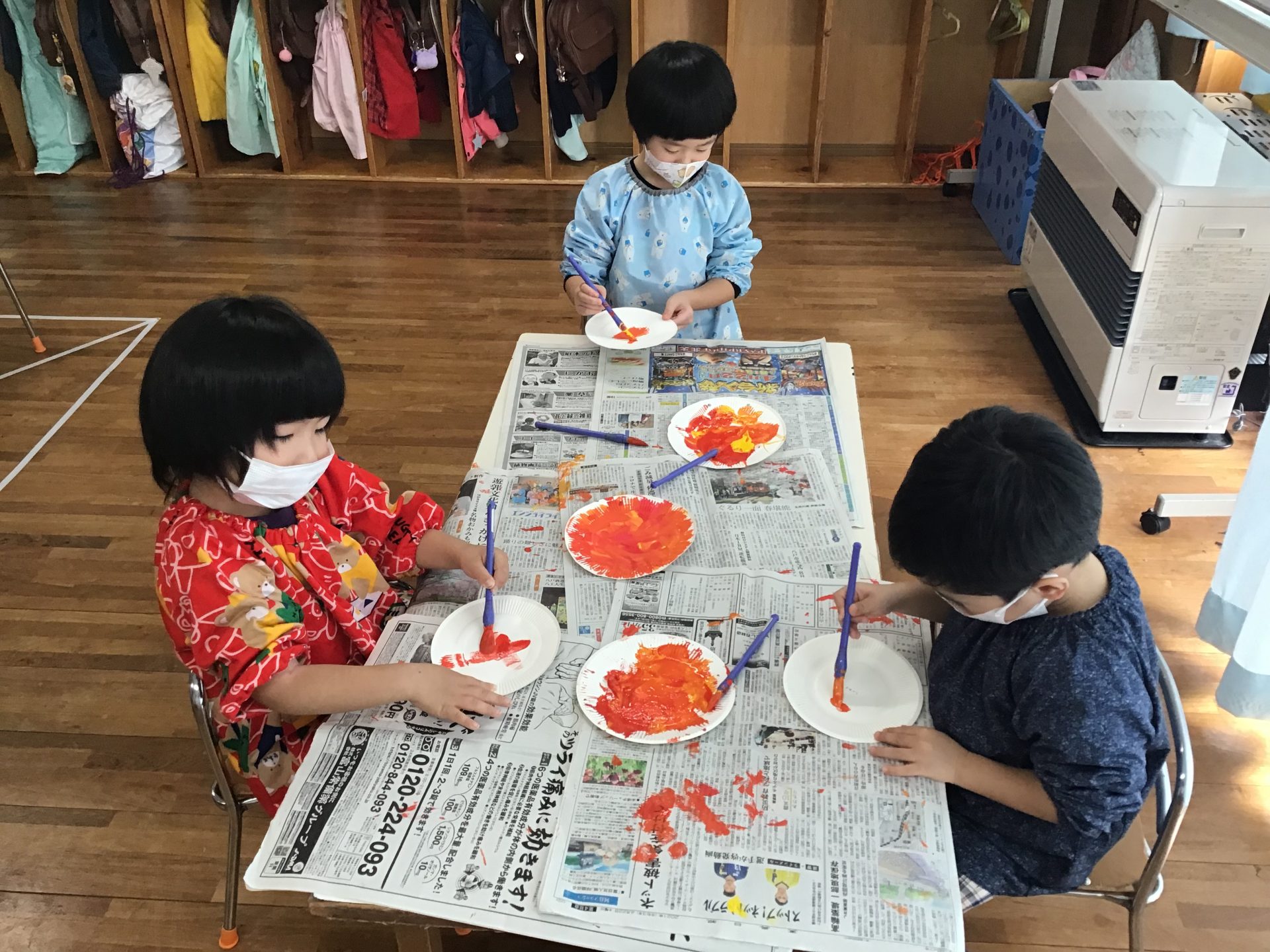 今日は先日のお遊戯会の様子を振り返って、お絵描きをしているクラスさんが多かったです。