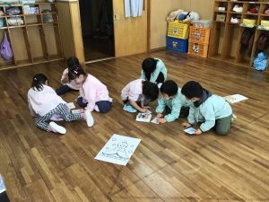 今日は卒園する年長組さんへのプレゼント作りを行なっていました。