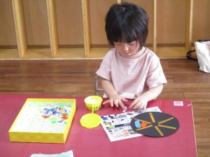 どこに何色の折り紙を貼ろうか悩みながらも、先生たちとのおしゃべりをしながら楽しそうに取り組んでいましたよ♪
