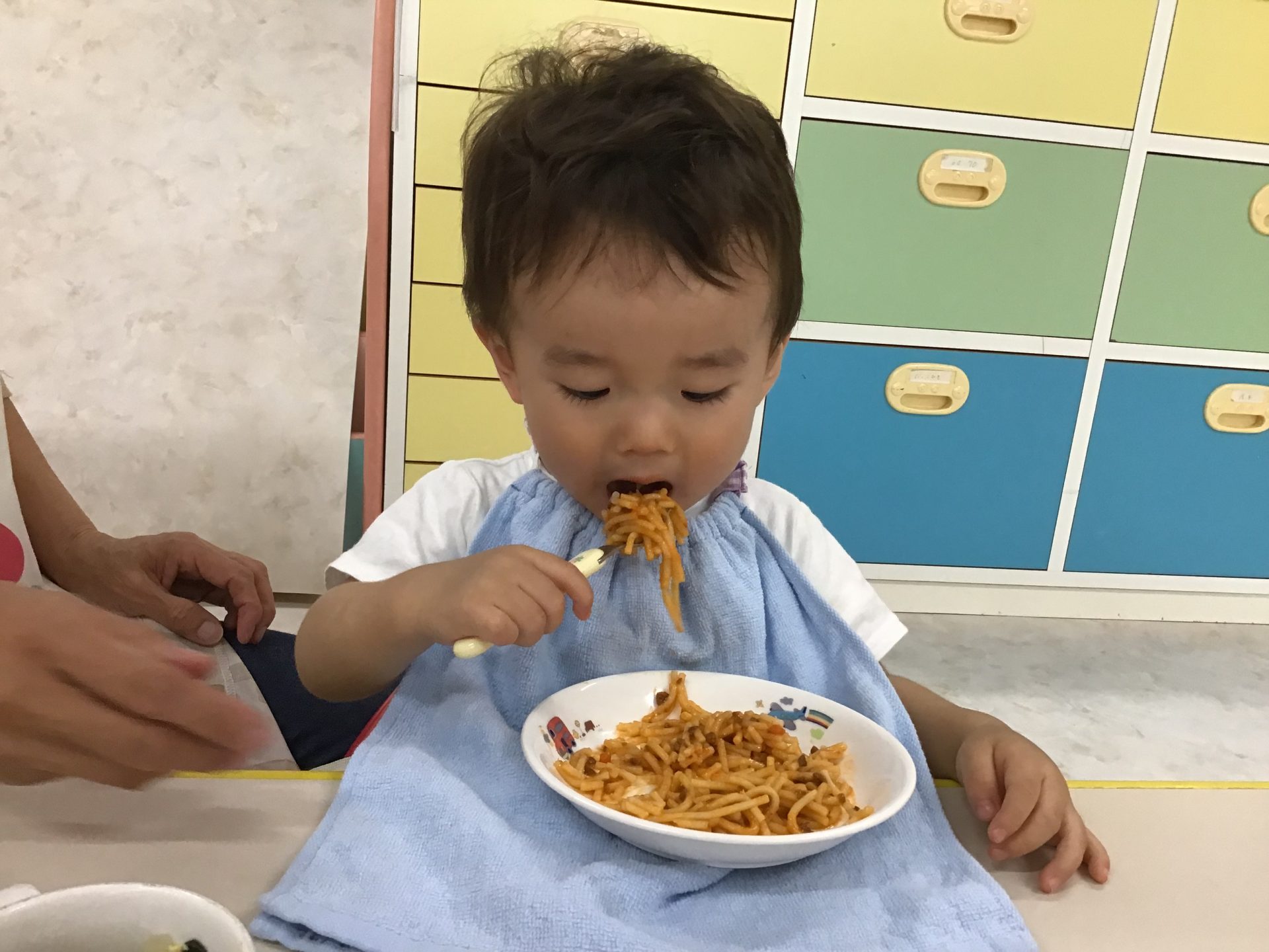 口の周りを凄い事にしながら、スパゲッティを美味しそうに食べていました★