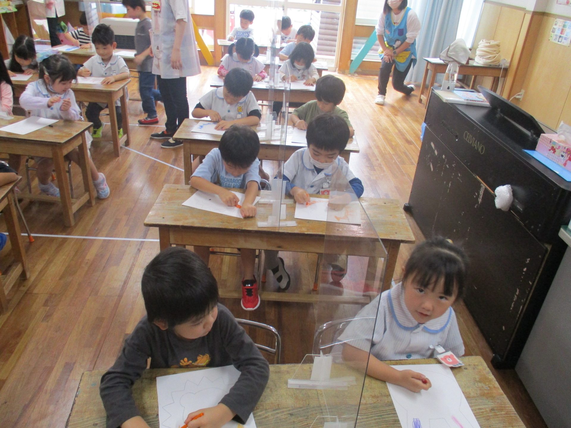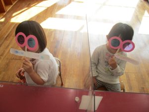 今日は実習生の先生による保育が行なわれました。今日は『トンボの眼鏡』を作っていましたよ♪