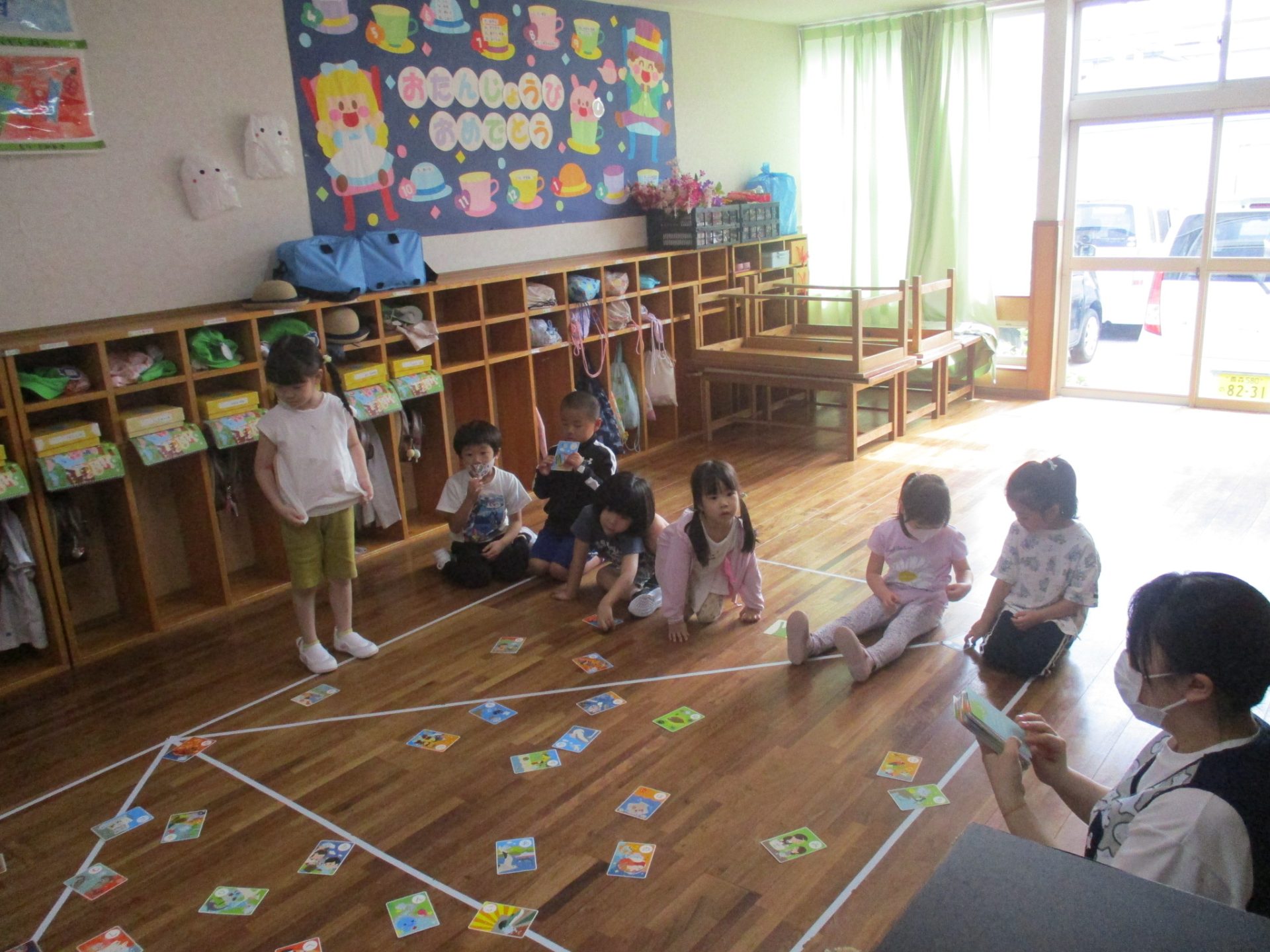 今日はお部屋で『カルタ』を行なっていました。2チームに分かれての