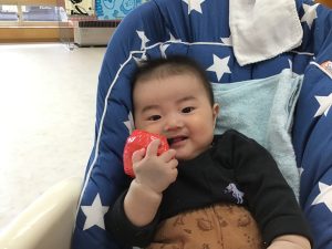 0歳児さんもリンゴを貰ってニコニコな表情で食べる真似をする姿が見られていましたよ♫