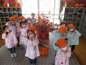 お給食のデザートには梨が出ていました。 秋の味覚を美味しそうに食べていましたよ♪