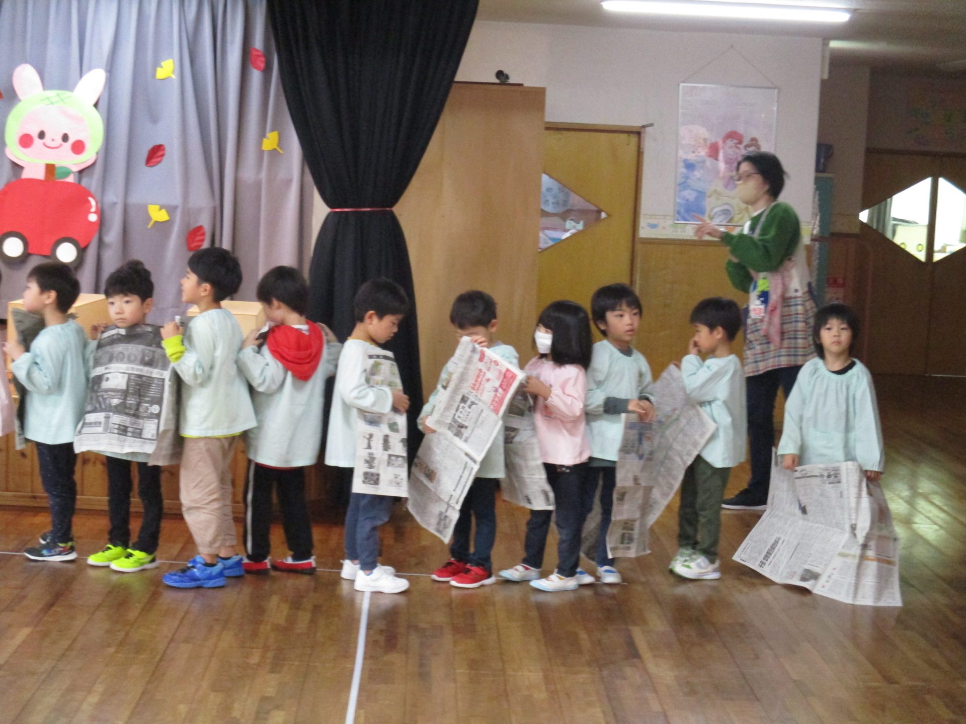 新聞紙を使って様々なゲーム遊びを楽しんでいましたよ!