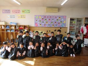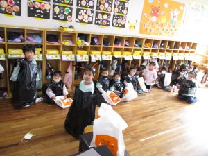 各クラスで前々から作っておいた仮装に着替えて準備を整えている間も、子どもたちはニコニコでした♪