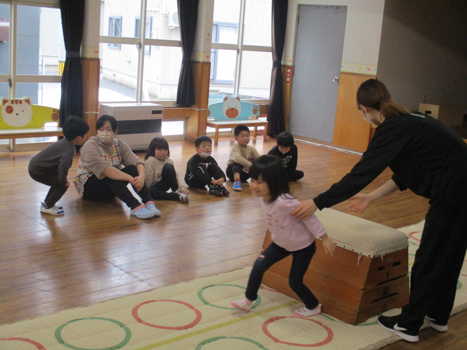 初めて跳び箱を行なう子も多く、初めは怖がってしまった子もいましたが、講師の先生に手伝ってもらったりしていく内に徐々に慣れてきた様です。