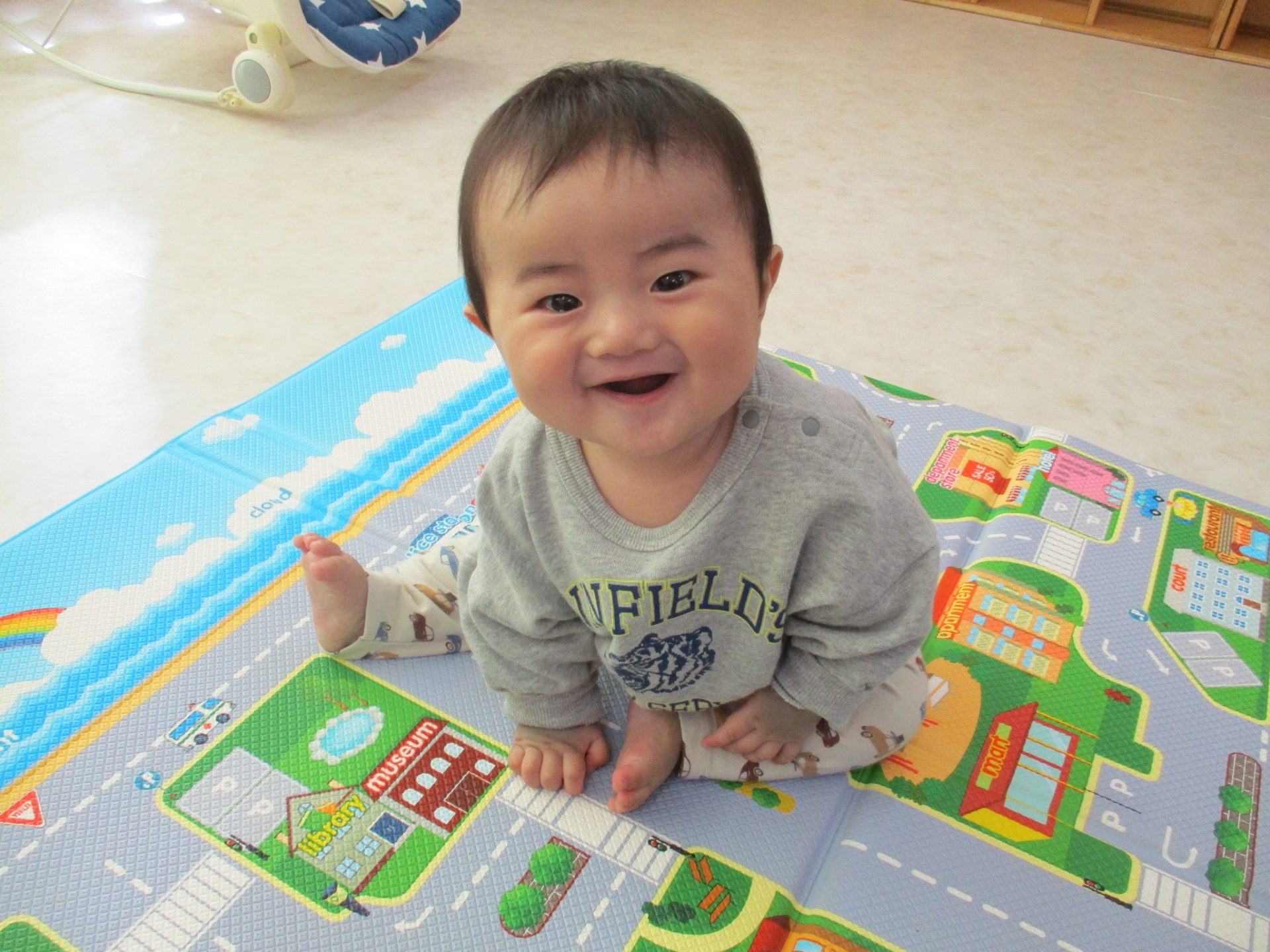 0歳児さんはお給食がまだ始まっていないので、遊びの様子を載せておきますね♪