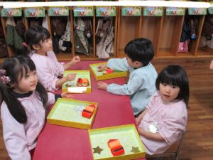 美味しい食べ物が描かれたカードを使って神経衰弱の要領でゲームを行なっていましたよ♪