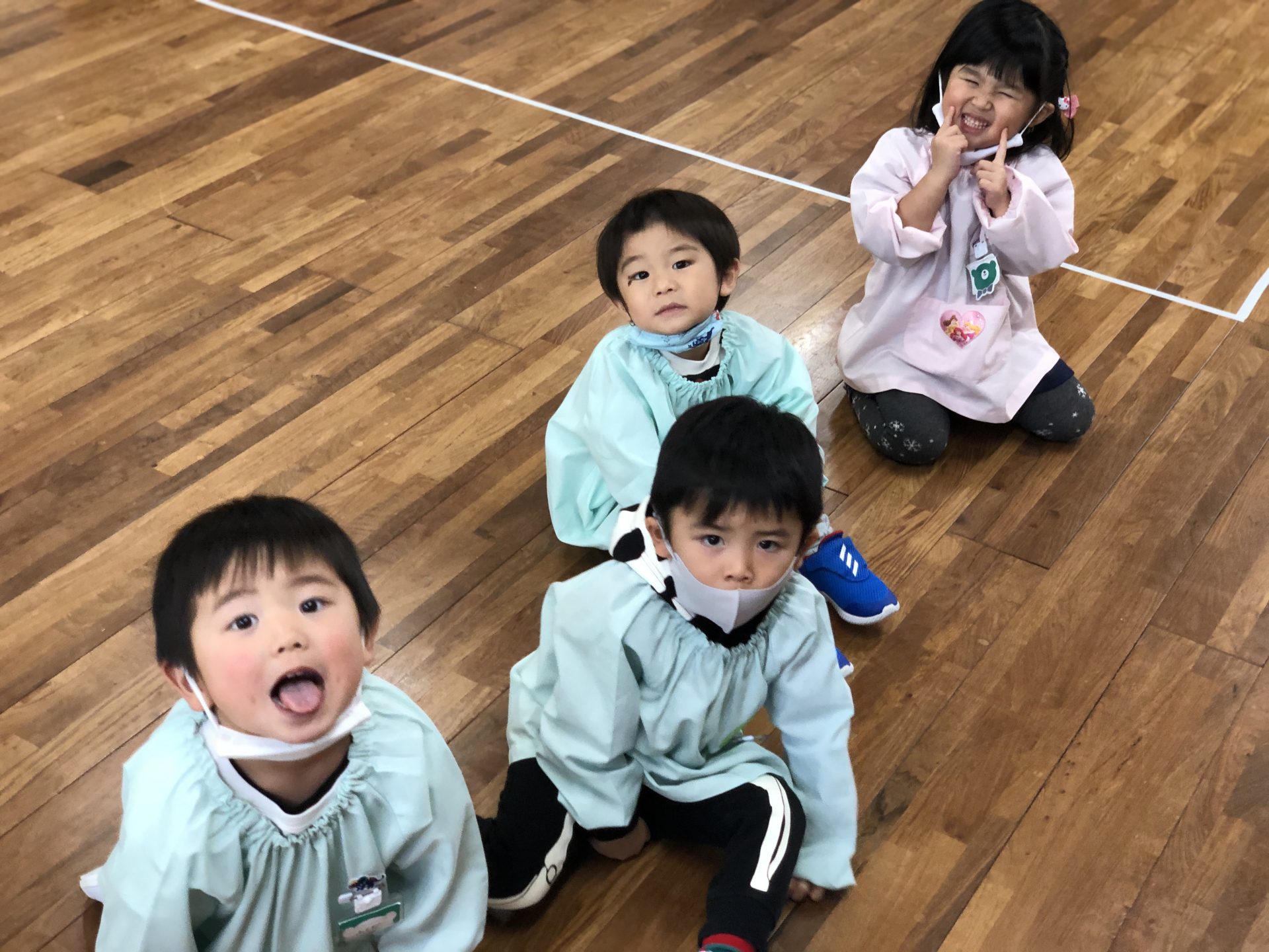 最初にお部屋の中に隠されたドーナツを見つけるゲーム!全員見つけてジャンケンに勝つと、平仮名が書かれた紙をゲットできます♪