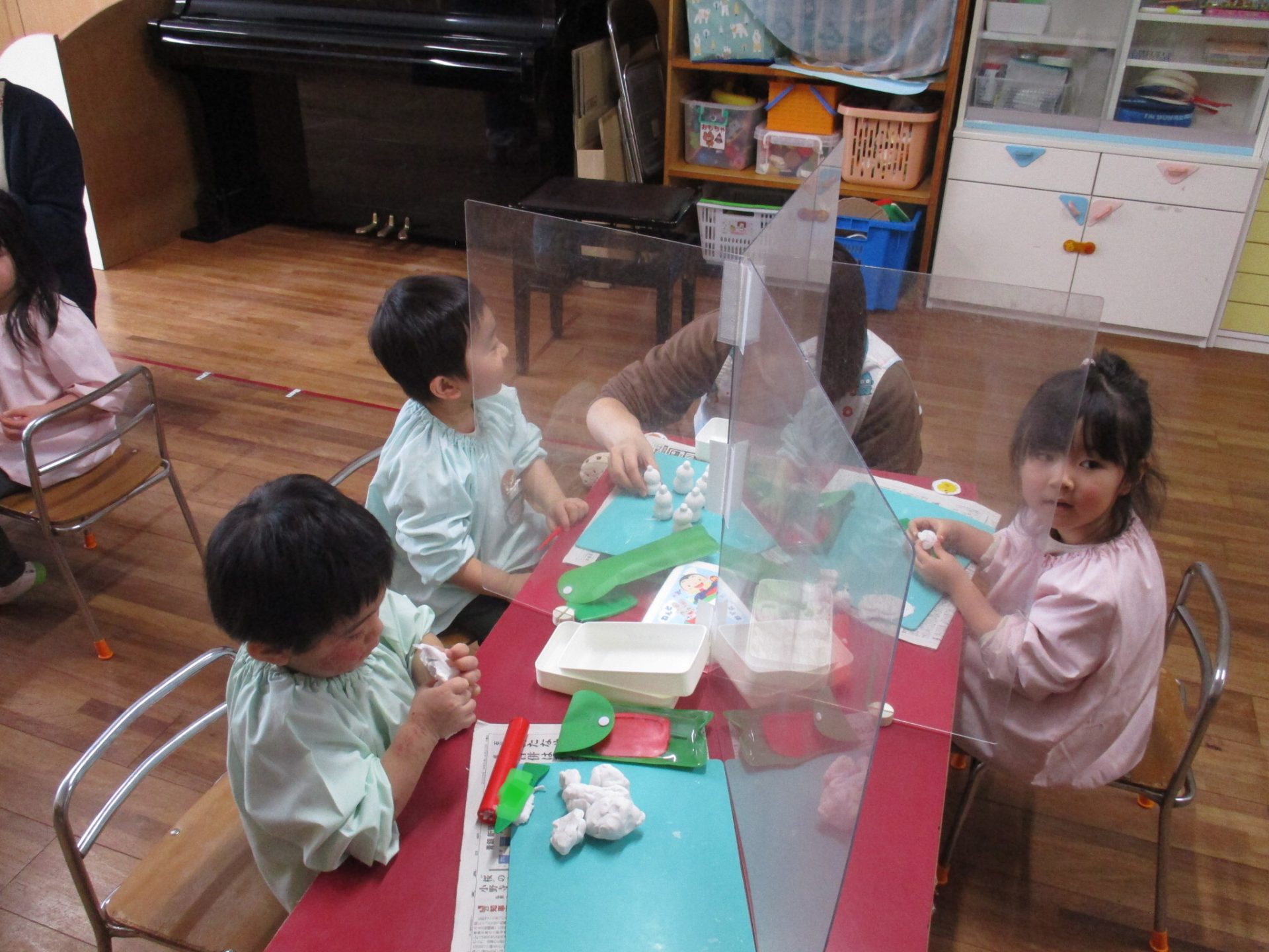 今日は粘土で『雪だるま』を作って遊んでいました。
