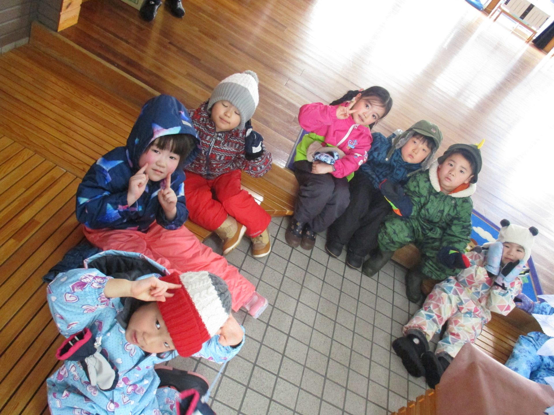 朝からスキーウェアに身を包んで登園してきた子どもたち。