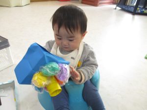 0歳児さんも一緒に制作活動に参加していましたよ。