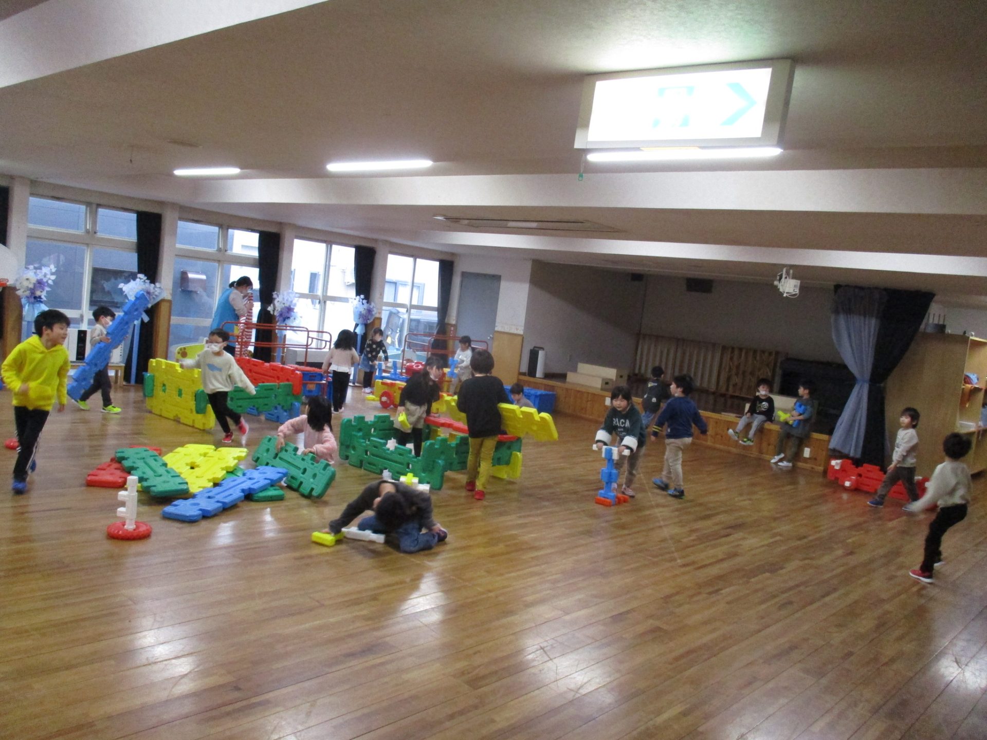 今日はホールで『リレー』を楽しんでからホール遊びを行なっていました。
