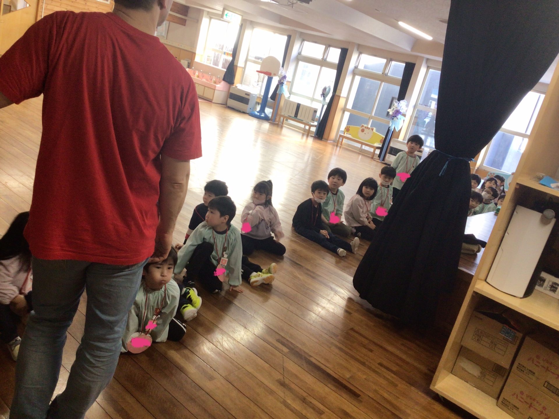 と落ち着いていましたが、節分集会がはじまるとドキドキしてきた子ども達…💗