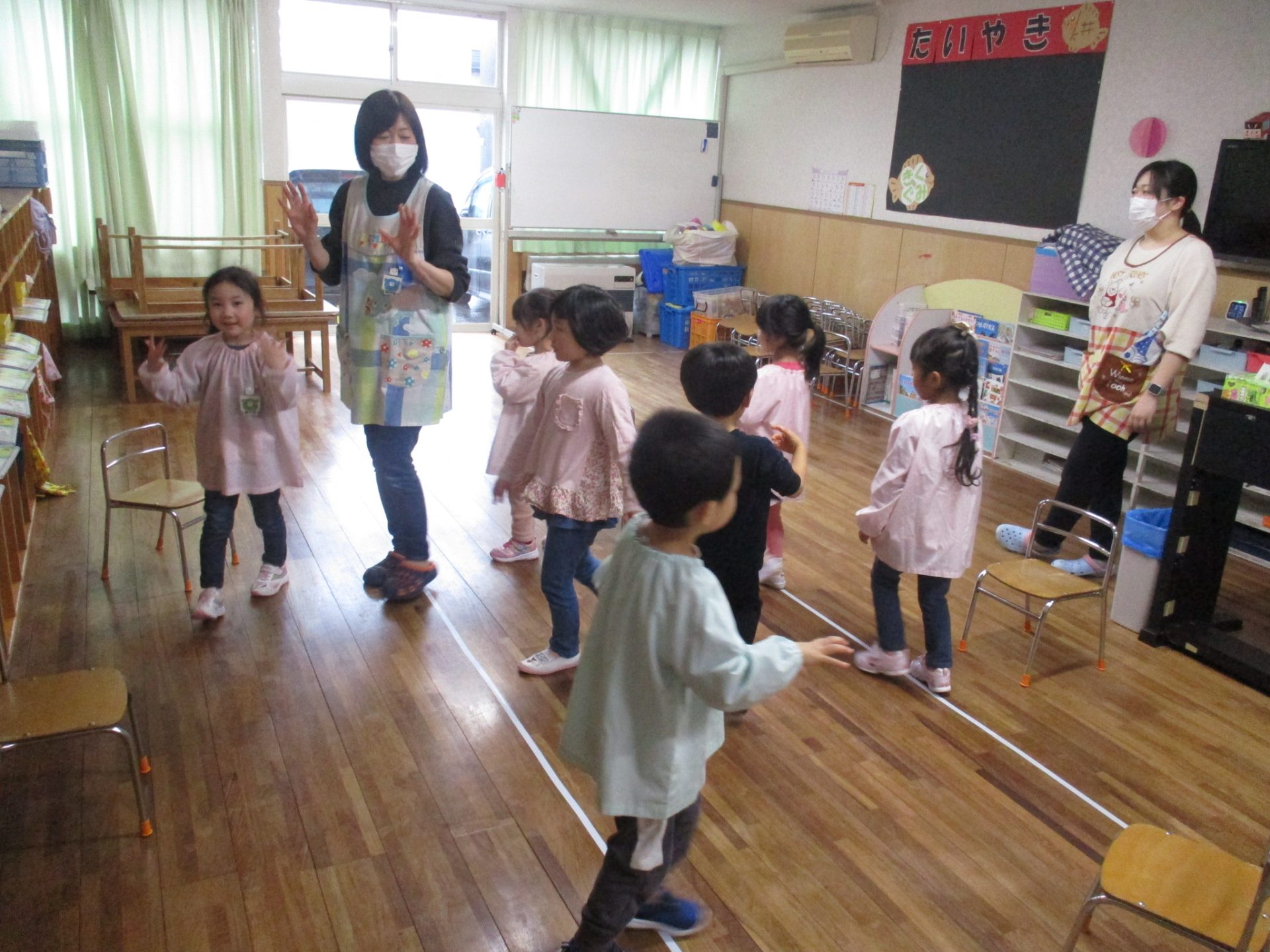 イス取りゲームでは、座るイスが無くなってもお友だちの膝の上に座ったらセーフ!というルールで行なった為、負けても悔しがったり泣いてしまう子もいなく、元気に過ごす事ができていましたよ🎵
