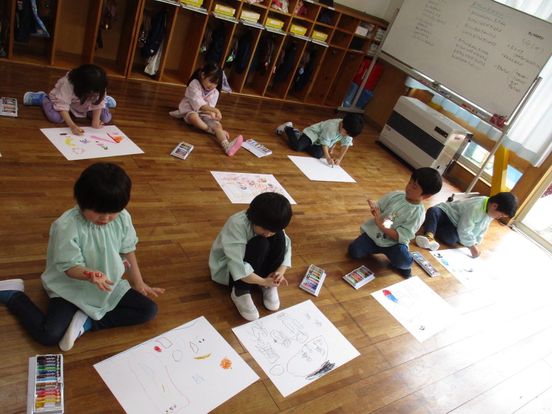 大きいサイズの画用紙いっぱいに絵を描いて、表現活動を楽しむ姿が見られていました!