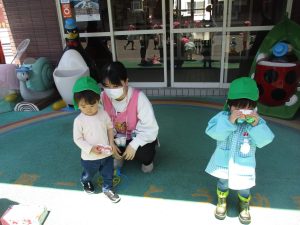 外に出てシャボン玉遊びをしている様子も双眼鏡で見てみたりして楽しそうにしていました!