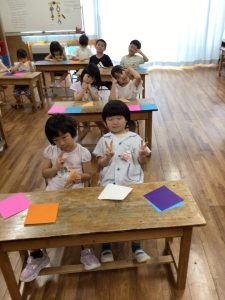 途中までは先生が折っていてくれたので、最後の方の手順だけでしたが、みんな自分の力で頑張って折っていました。