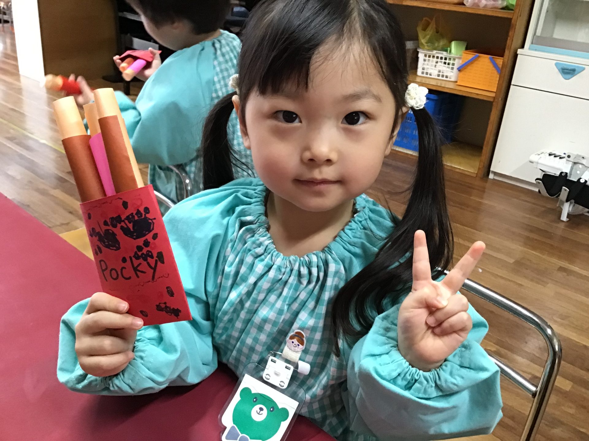 という事で、今日はストローや折り紙、色画用紙など様々な素材を使ってポッキー作りを楽しんでいるクラスさんがありました。