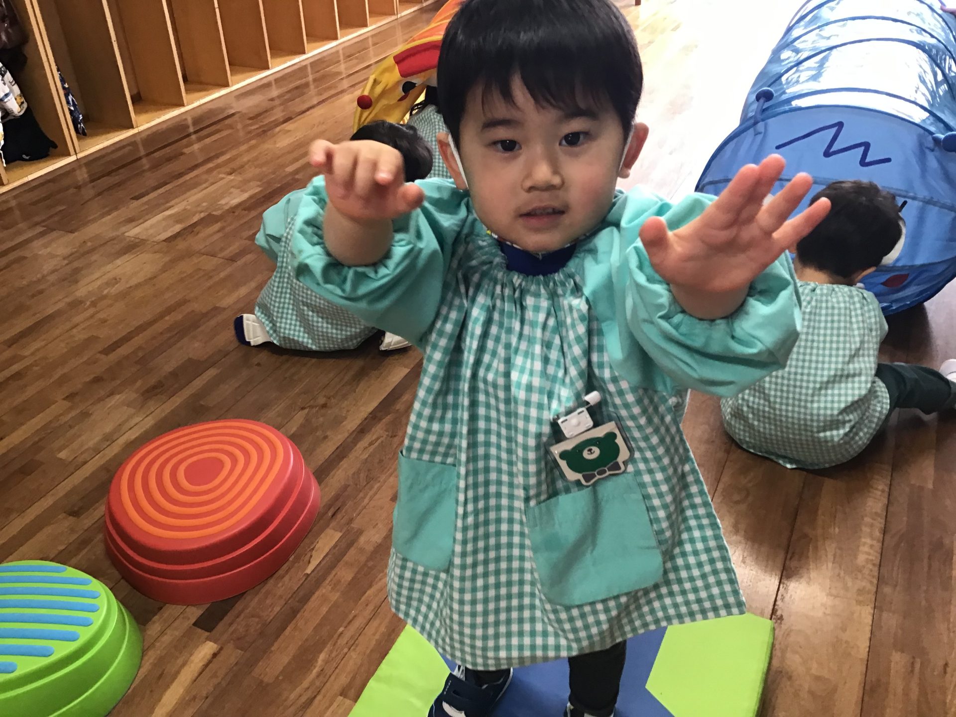 バランスをとりながら歩いていく遊具を出すと、手を広げたり、慎重に歩いたりして、上手に進んでいる姿も見られていました🎵