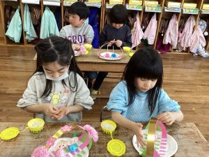 さくらさんでは紙皿のまわりに折り紙のお花を貼り、ひなまつり製作を完成させていました!