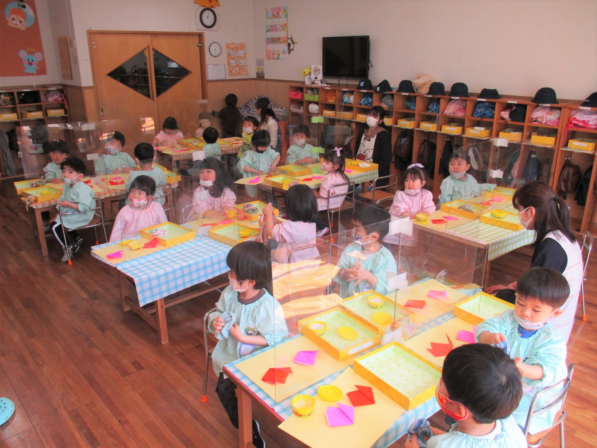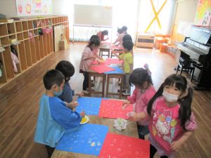 今日は年長組・年少組のお友だちが制作活動に取り組んでいました。