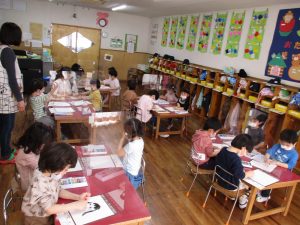 ばら組さん・さくら組さん・きく組さんはお母さんの似顔絵を描いていました。