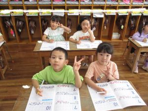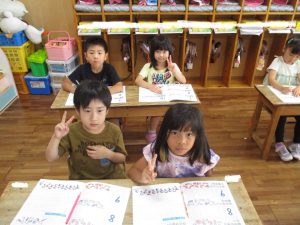 8の数字を書くのが少し難しく、バランスがうまく取れない子もいたのですが、先生と一緒に少しずつ自分の力で書ける様になっていましたよ!
