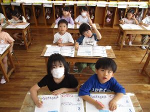今日は数字・平仮名ノートを使ってお勉強の時間を設けていました。