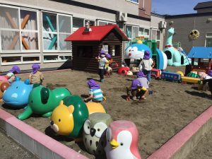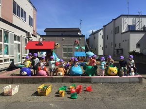 今日は天気が良かったので園庭で遊ぶ時間を設けていました。