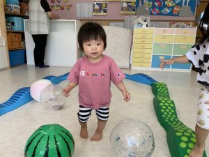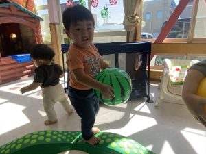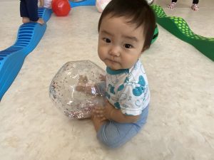 0歳児さんも忙しそうにお部屋の中を歩き回ったり、ボールを手にして楽しそうな表情を見せていましたよ♩