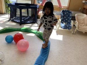 バランスウェーブを2つ繋げていつもより長い距離にしてあげるとニコニコしながら挑戦する姿が見られていましたよ♩