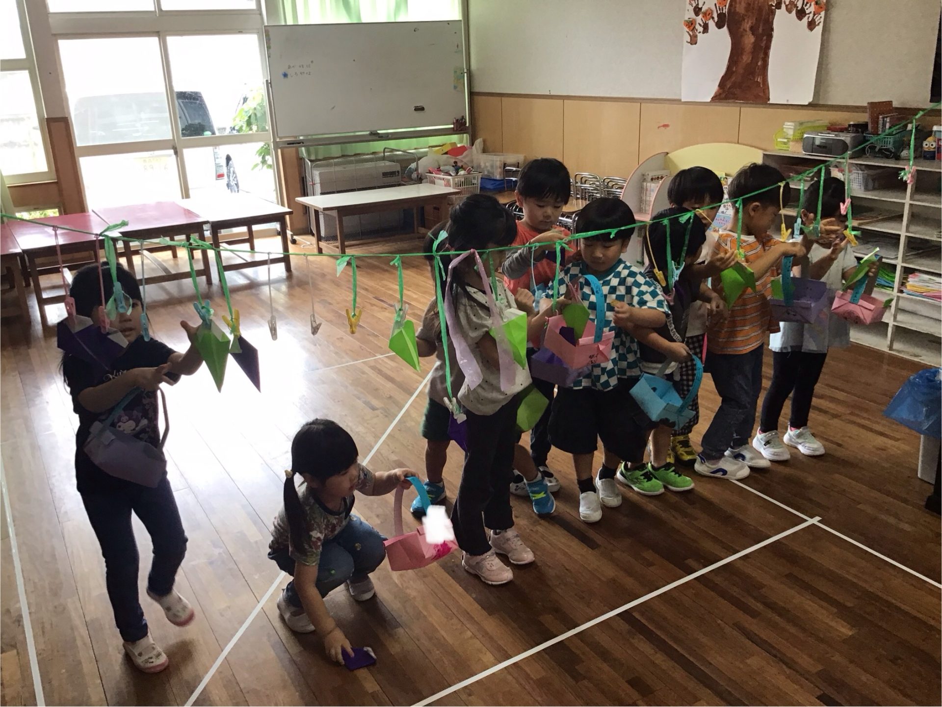 今日は昨日折り紙で作った『ブドウ』を使ってブドウ狩りを楽しんでいました。