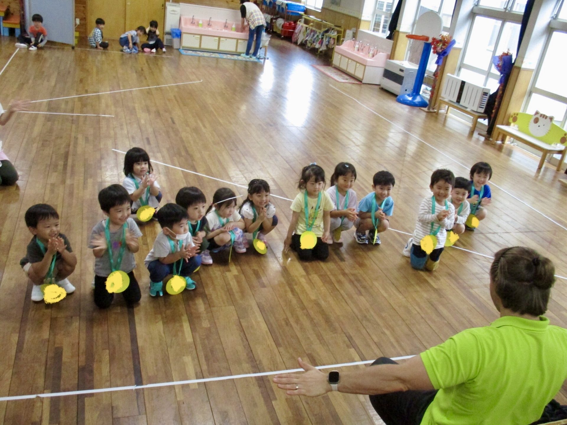 今日は年中組、年少組の英語教室が行なわれました。