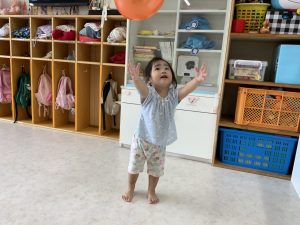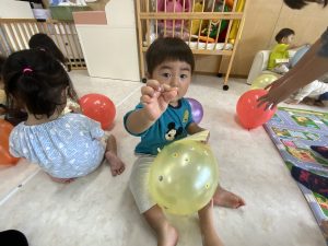 今日はお部屋で風船遊びをしていました。