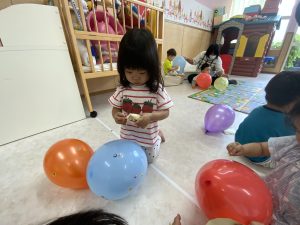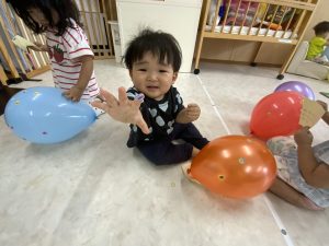 時々風船に爪を立ててしまう子もいて、風船が「パン!!」と大きな音で割れてしまうたびに、みんなとてもビックリしていましたよ(笑)