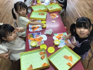 年少組さんは初めての英語教室という事で、初めは緊張気味な様子でしたが、徐々に笑顔で参加出来ていたので良かったです♩