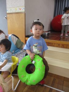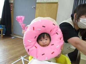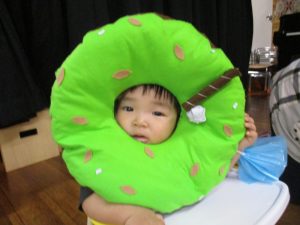 ふたば組さんはドーナツの被り物を用意したのですが、ご機嫌があまり良くなくて・・・一瞬で終わってしまったので(笑)練習中のご機嫌な時に撮影した写真を載せておきますね★
