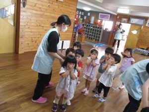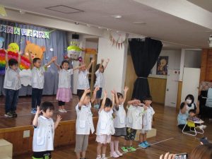 最後は年長組さんのカッコいい終わりの言葉で、お誕生会を締めてくれました♩