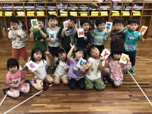 今日はアルファベットカードを使って英語のお勉強をしていきました。