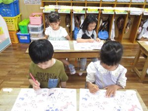 丸の形に切っておいた画用紙に表情を描き加えていく作業に取り組んでいましたよ♩