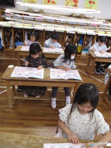 1〜20までの数字を線で繋いでいく内容では声に出して数えながら、頑張って取り組む姿が見られていましたよ!