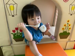朝から雨だったので、子どもたちは長靴や傘をさしている子もいて、自分のお気に入りの長靴と傘をニコニコで披露してくれましたよ♩