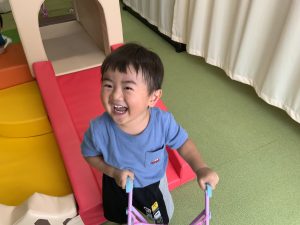 おもちゃを目の前にしてニコニコしながら遊んでいましたよ♩