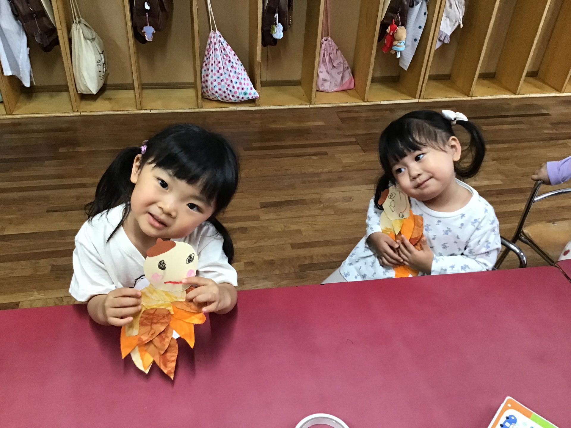 前もって作っておいた体と一緒に貼り付けて、お部屋の壁に飾ってあげると子どもたちは大喜び🎵