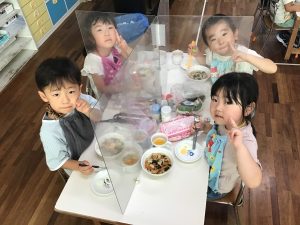 きく組さんは砂場の周りで鬼ごっこをしたり、砂場でお店やさんを開いている子もいて、とても楽しそうに遊んでいましたよ♩