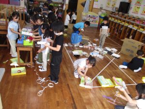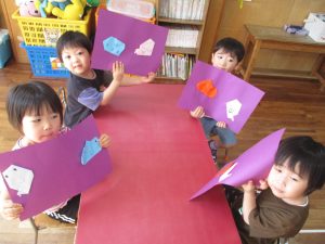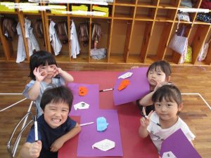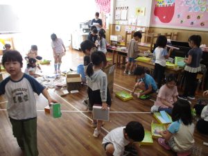 自由に考える・・・というのが難しく感じた子もいた様ですが、先生と一緒に相談し合いながら取り組んで、思い思いの物を作り上げていました★