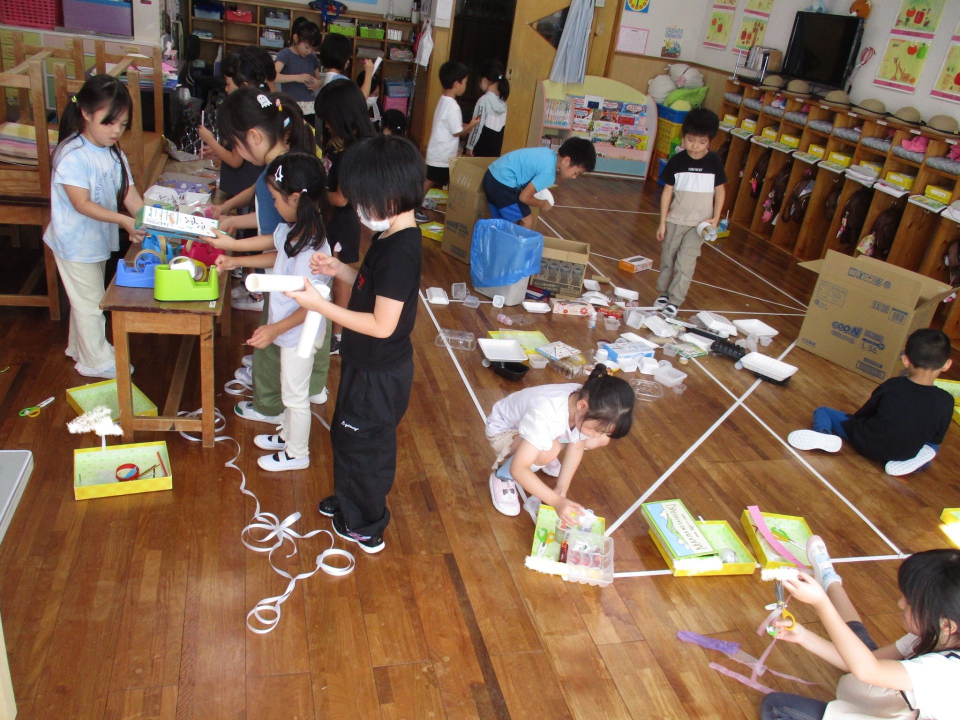 今日はお部屋で廃材を使って自由に制作を楽しんでいました!