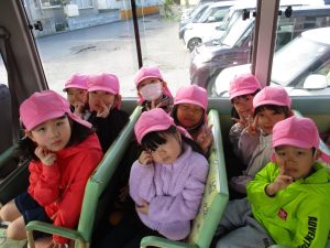 すみれ組さんはバスに乗る事自体が楽しみだった様でバスの中でも終始ニコニコでお喋りをしたり周囲の建物に興味津々!といった様子でしたよ♩